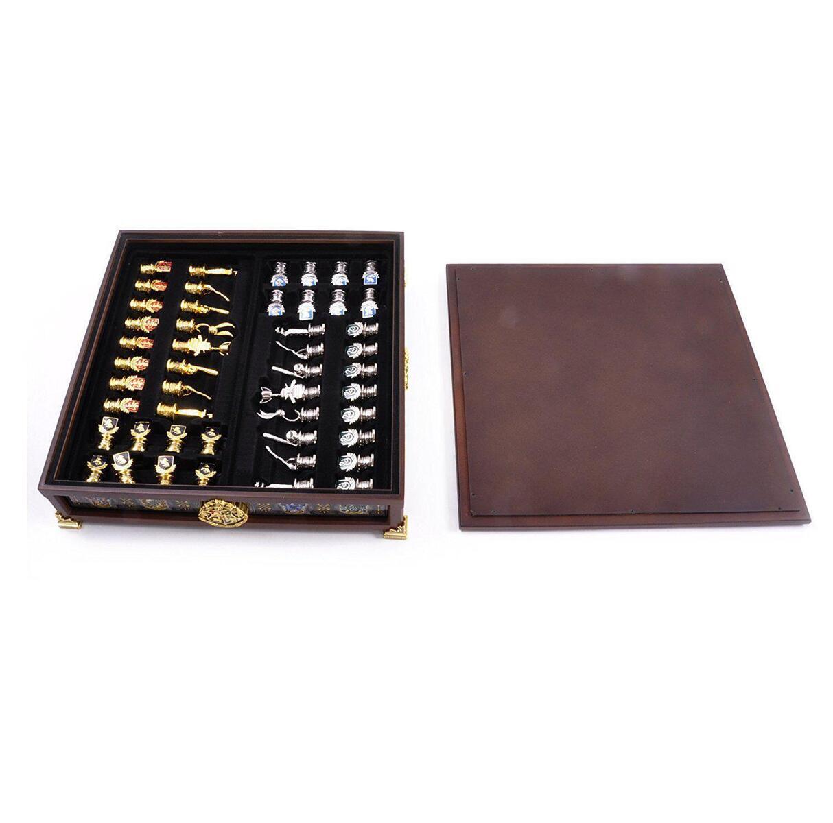 Этот шахматный набор — не просто реплика, а функциональное произведение искусства. Роскошное покрытие фигур и детализированная деревянная доска с золотыми элементами отражают эстетику Волшебного мира. Он идеально подходит для тех, кто любит как настольные игры, так и коллекционирование.