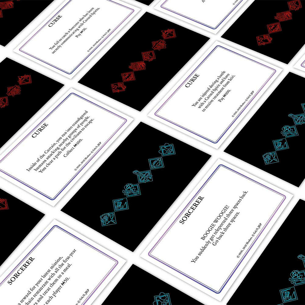 Используйте один из семи уникальных золотых жетонов, представляющих ваших любимых персонажей, таких как Итадори, Кугисаки и Мэгуми, чтобы путешествовать по игровому полю. Встречайте ключевых героев из арки «Инцидент в Сибуе», захватывайте территории, стройте дома и отели, осваивайте новые атаки и техники или обращайтесь за помощью к доверенным помощникам.