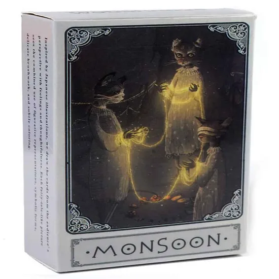 Дизайн: Карти мають оригінальний дизайн, що запам'ятовується, натхненний азіатською культурою і міфологією. На них зображені яскраві та динамічні сцени, пов'язані з мусонами, такі як бурхливі вітри, зливи, грози та веселки.