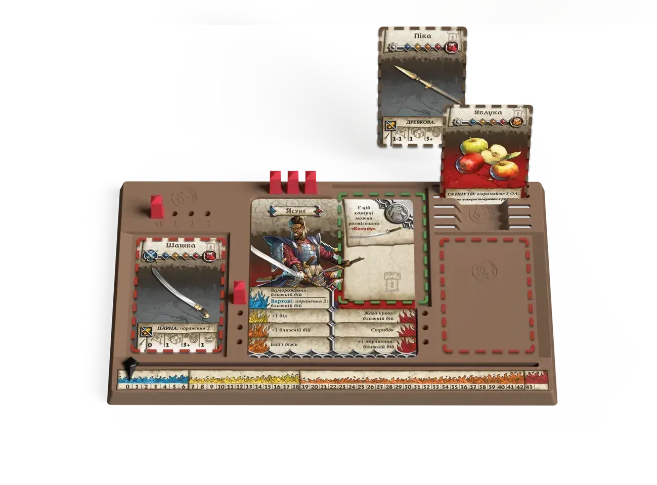 • Активация. Каждый зомби активируется и выполняет одно действие: атаку или перемещение. Атаки зомби всегда успешны, но от них можно попробовать защититься. Полученные ранения атакованные игроки распределяют между собой. Если маркер достигнет отметки 3 на треке ранений, герой погибает и все игроки терпят поражение.