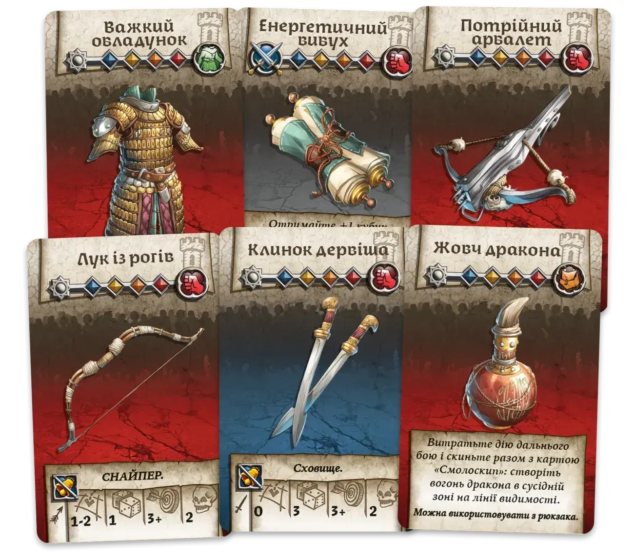• Упорядочение инвентаря / обмен снаряжением. Упорядочьте карты в своем инвентаре, как считаете нужным. Обменяйтесь снаряжением с другим героем в своей зоне.