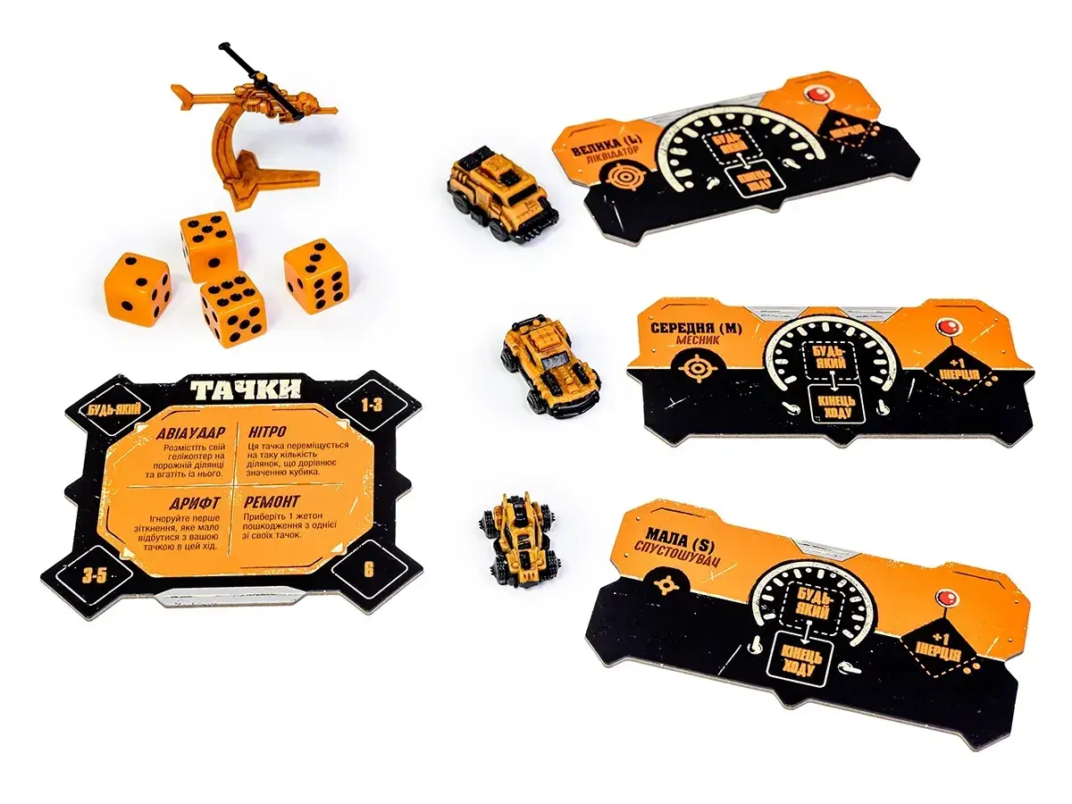 1. Назначьте один кубик исправной тачке. Значение на кубике определяет количество участков, на которые тачка переместится.