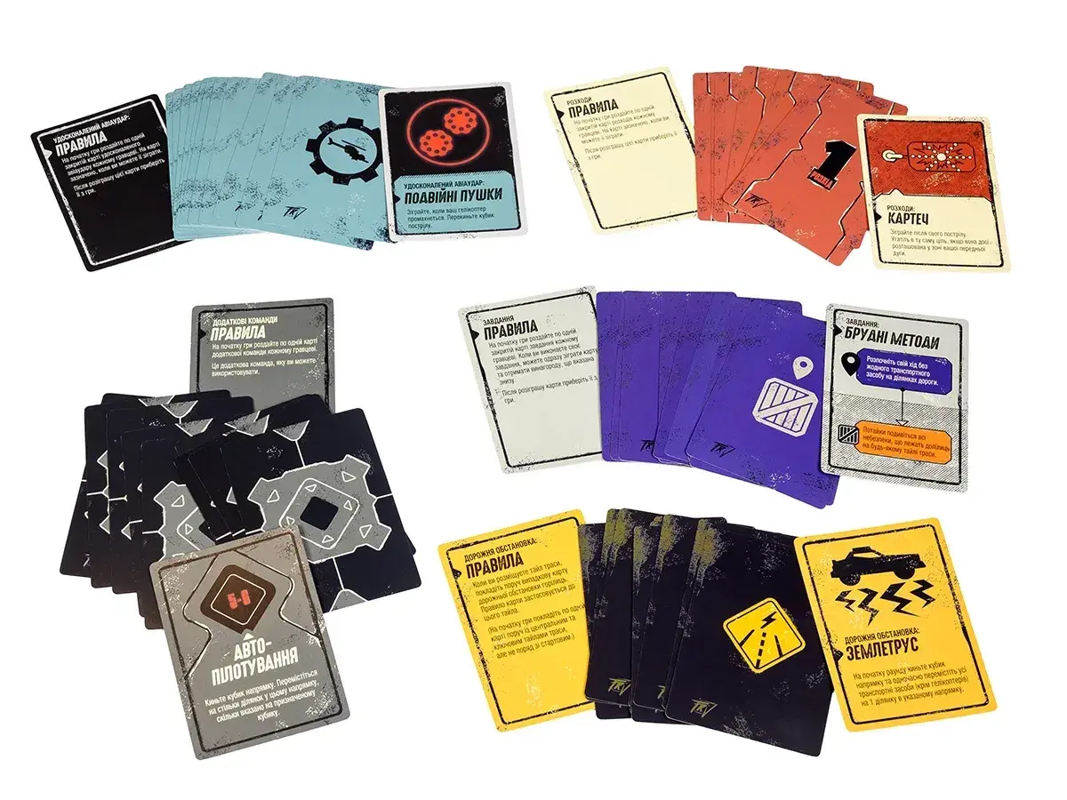 Когда один из игроков теряет весь транспорт, он выбывает из игры, а к трассе прилагается плитка с финишной прямой. Победу одержит тот, кто первым пересечет финиш или останется единственным гонщиком на дороге!