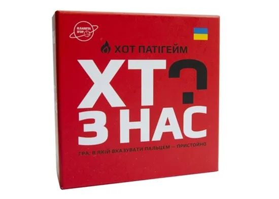 У вас намітилася серія вечорів дружніх одкровень зі щирими і неприкритими цоканнями пальцями один одного і веселими історіями без зніяковілості і сорому, до якої потрібно підготуватися? Можливо, ви самі не можете придумати чи сформулювати відповідне питання, але дуже хочеться дізнатися, хто любить доглядати до кінця фільми для дорослих чи заливає на сайти знайомств чужі фотки? Тоді настільна гра Хто з нас? ХОЧ! надасть для цього 300 повністю готових повноцінних питань, на які відповідатимуть за вас друзі без слів одним лише пальцем.