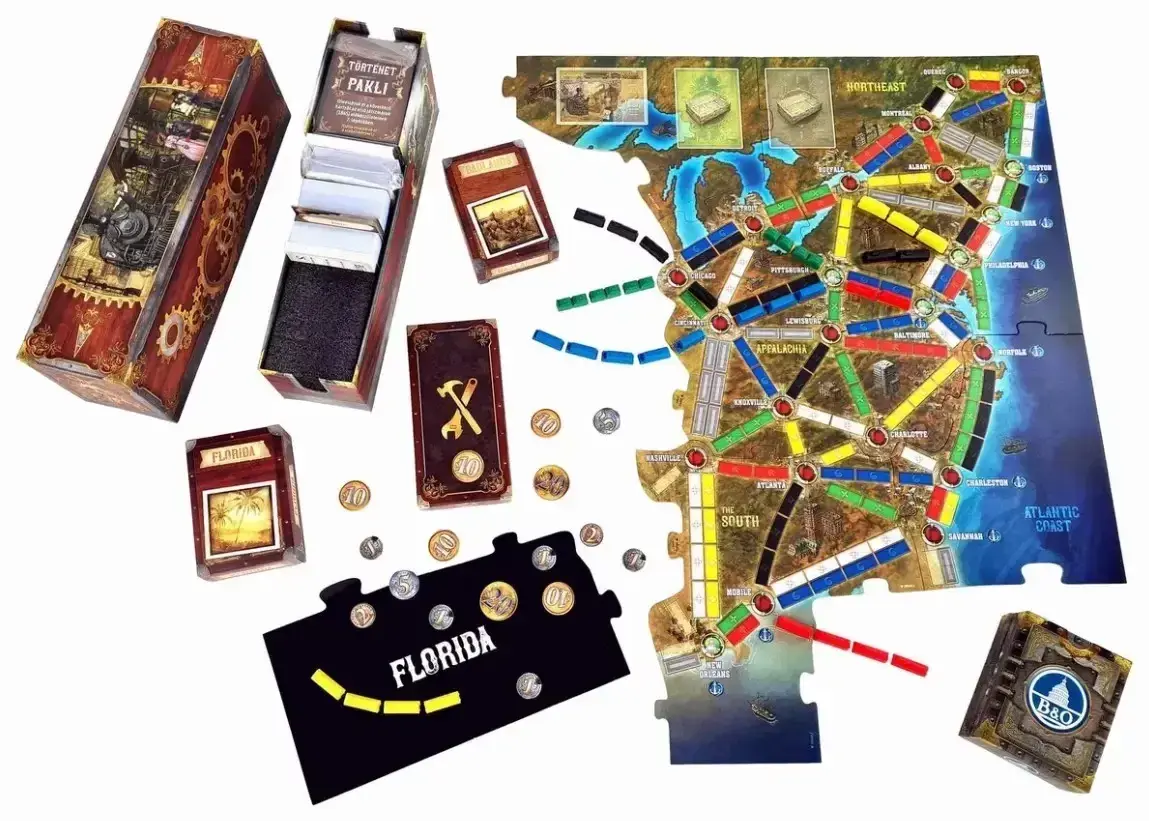 Ваша цель — стать самым богатым железнодорожным магнатом, но путь к богатству пролегает через постепенное развитие сюжета (механика Legacy). Игра начинается лишь с частью карты, которую вы, игроки, будете расширять и менять от партии к партии, вскрывая новые правила, компоненты и сюжетные повороты из секретных коробок.
