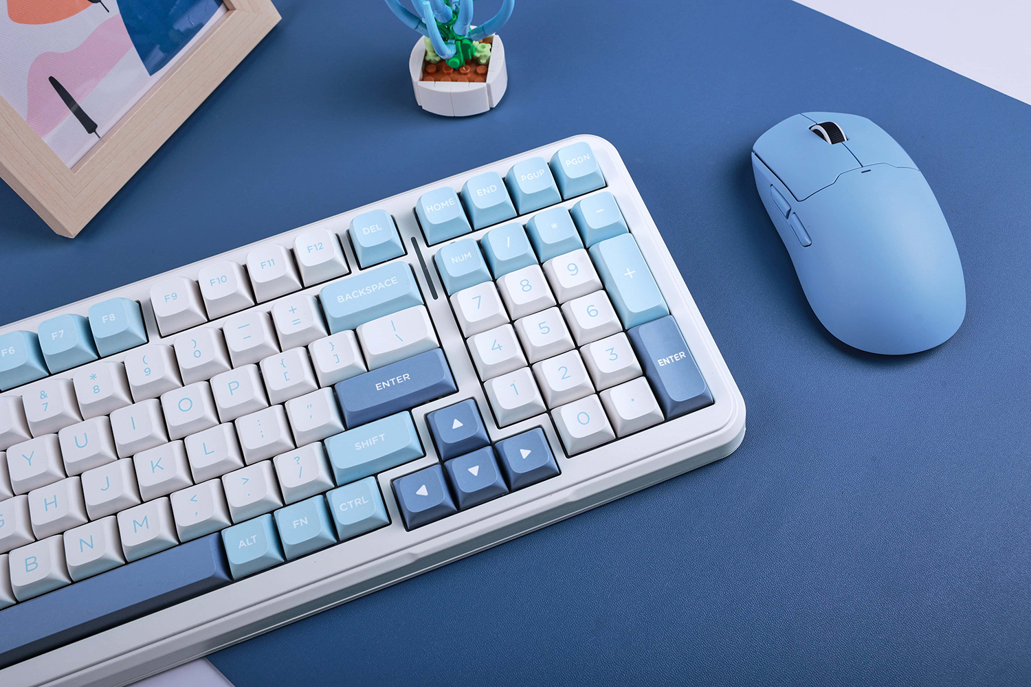 MCHOSE K99 сочетает лучшее от мира кастомных клавиатур с удобством готового продукта. Конструкция Gasket Mount и шестислойная шумоизоляция делают процесс печати исключительно приятным и тихим, что идеально подходит для работы и ночного гейминга. Яркий дизайн «Sky Blue» выделяет ее из стандартных черных и белых моделей.
