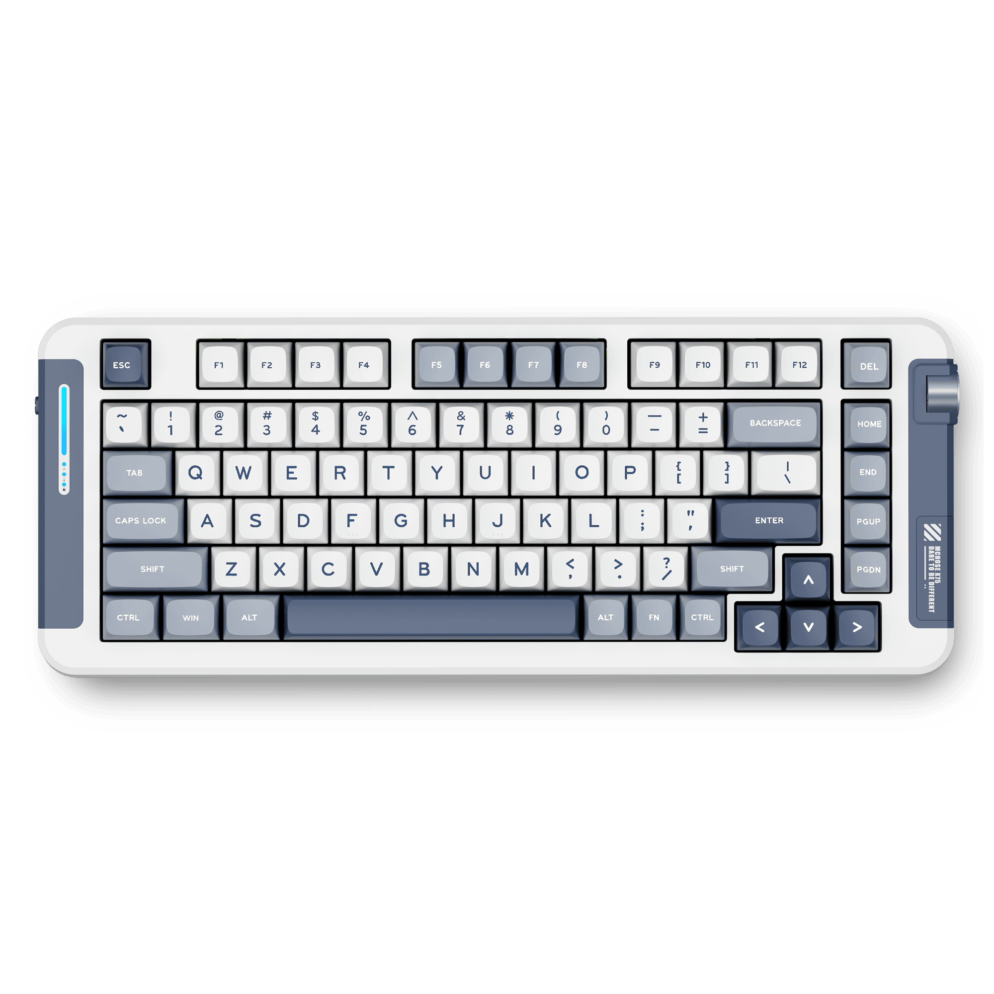 Представляем беспроводную механическую клавиатуру MCHOSE X75 в элегантном темно-синем («Navy Blue») цвете. Эта модель в компактном форм-факторе 75% (сохраняющем функциональный ряд и стрелки) разработана для пользователей, которые ищут идеальный баланс между размером, премиальной акустикой и многофункциональностью.