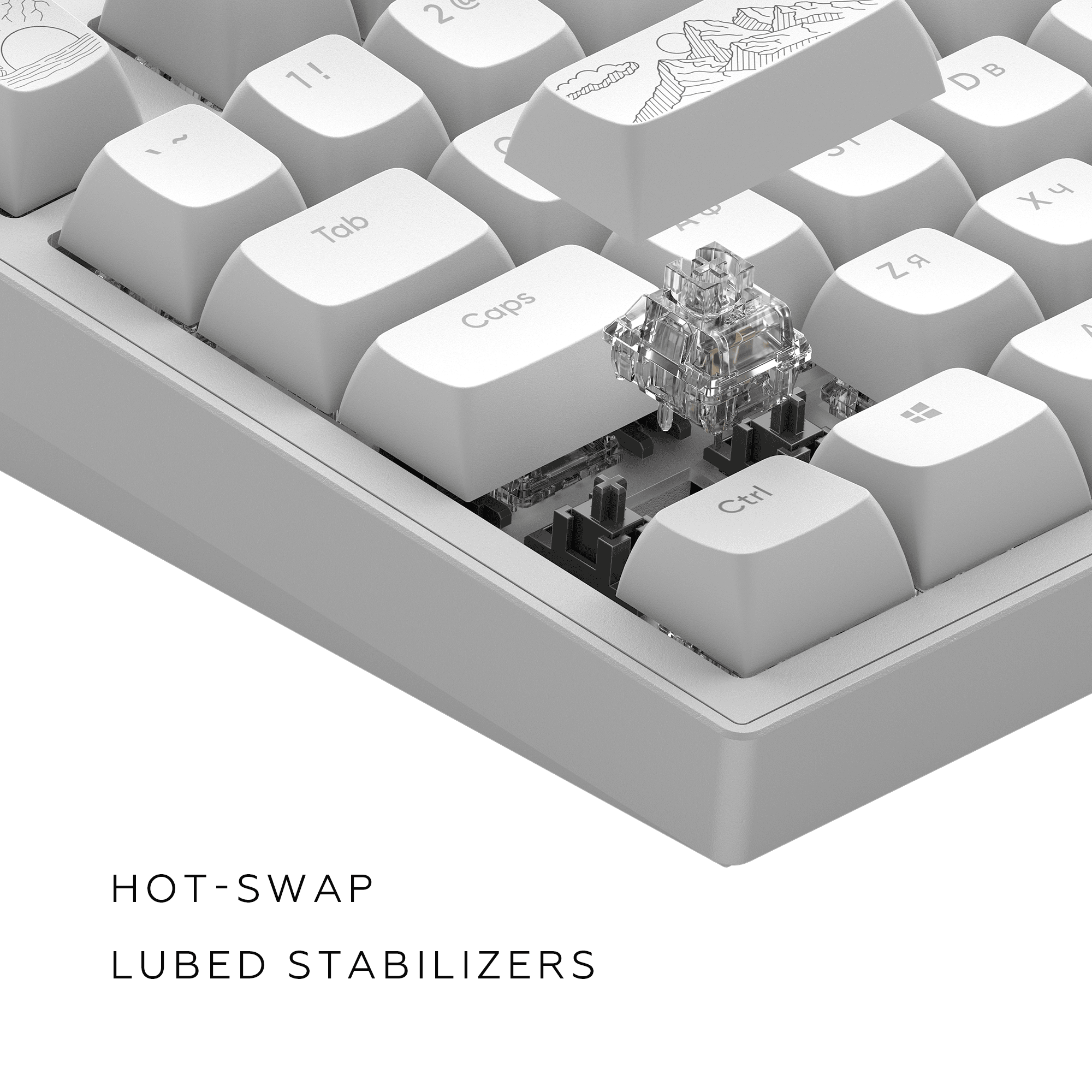 ALU81 Terra Nostra оснащена передовою конструкцією Gasket Mount та перемикачами G3MS Moonstone, що гарантує унікальне тактильне та звукове задоволення при кожному натисканні.