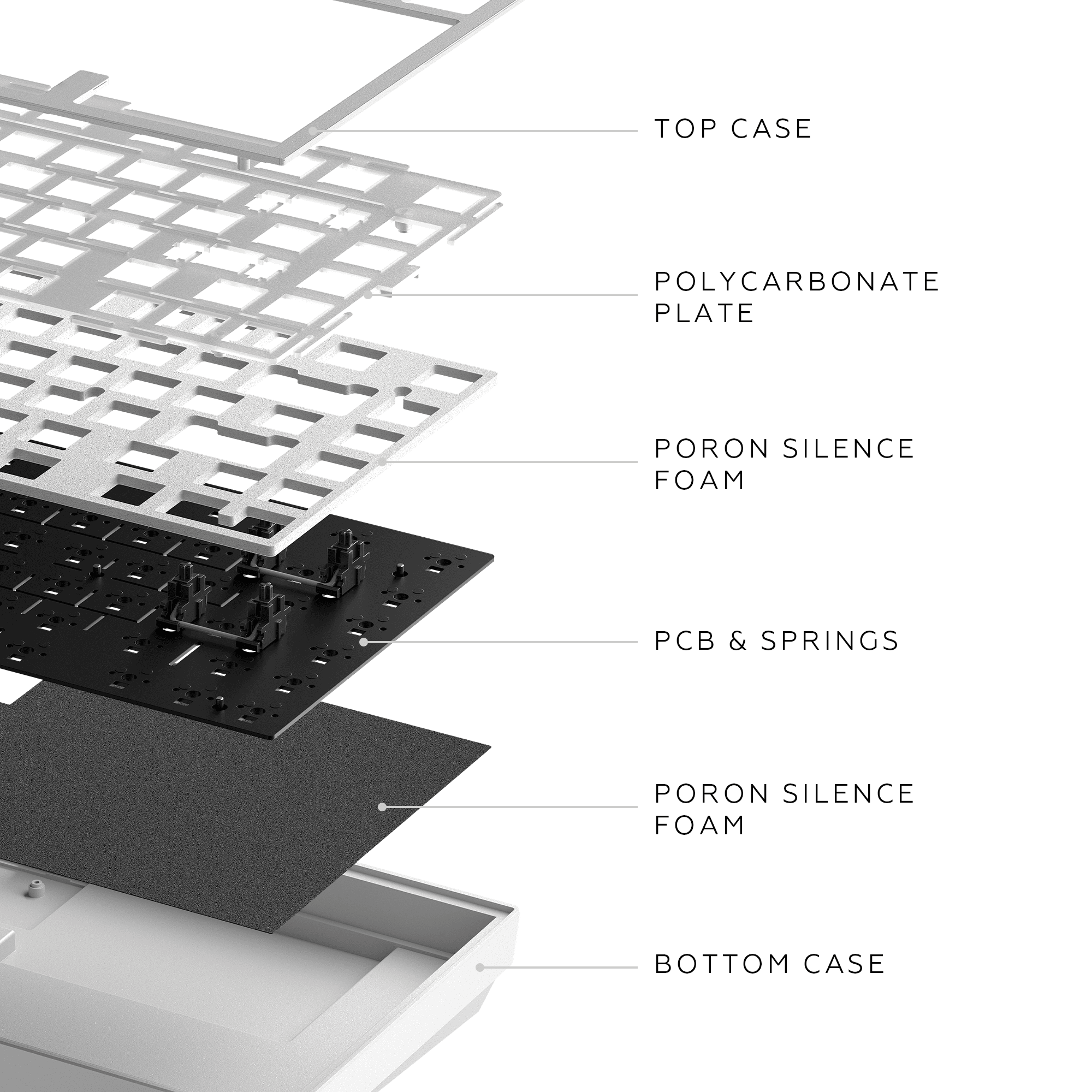 Конструкція: Gasket Mount (Кріплення на гумових прокладках) та двошарова шумоізоляція PORON – забезпечує м'який, «глухий» звук та виключає резонанс.