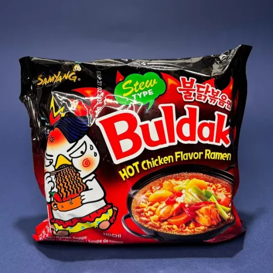 Це унікальна версія знаменитої серії "Buldak" від компанії Samyang. На відміну від більшості інших видів Buldak, які подаються як смажена локшина без води, ця версія – Stew Type – готується як густий, наваристий суп-гуляш.