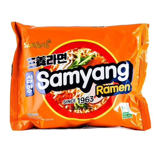 Локшина швидкого приготування Рамен зі смаком яловичини і шинки марки Samyang - те, що потрібно людям, бажаючим заощадити час! Вона має чудовий аромат, і великої порції в 120 г вистачить, щоб вгамувати голод навіть знатних любителів добре поїсти. Цей продукт дуже ситний, з його допомогою можна заповнити недолік енергії, а також вітамінів групи В.