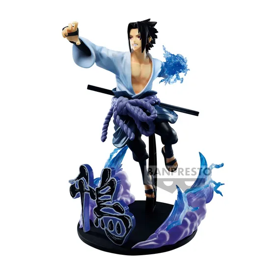 - Динамичная поза: фигурка запечатлела Саске в его фирменной боевой стойке, полной силы и решимости. Он словно готов к бою, демонстрируя свою мощь и мастерство ниндзя.