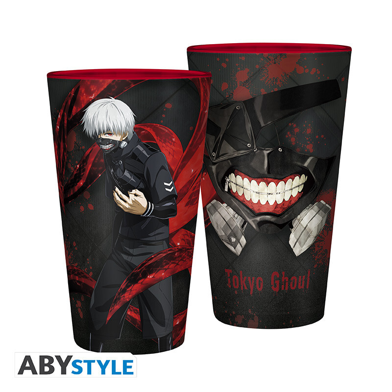 Официально лицензированный стеклянный стакан большого формата от ABYstyle, посвященный мрачному миру манги и аниме «Токийский гуль» (Tokyo Ghoul). Дизайн стакана отображает ключевую тему сериала — внутренний конфликт главного героя Кена Канеки, который вынужден жить на грани между миром людей и гулей. Изображение демонстрирует Канеки в его фирменной маске, готовящегося активировать свое кагуне.