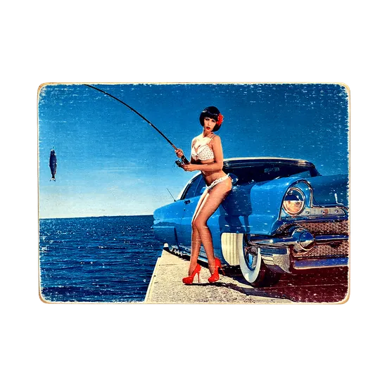 Он идеально подойдет для тех, кто любит ретро стиль, пинап, красивых девушек и рыбалку.