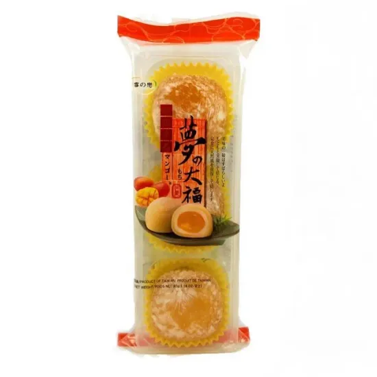 Моті зі смаком манго від тайванського бренду Bamboo House - це вишуканий десерт, що поєднує традиції східної кулінарії і насичений смак тропічного фрукта. Ці м'які та еластичні рисові тістечка наповнені солодкою манговою начинкою, створюючи гармонійне поєднання текстур та смаків.