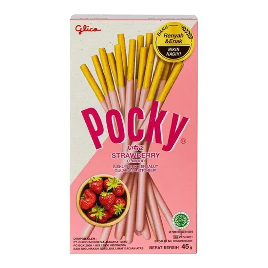 Pocky Strawberry cream поєднує в собі аромат стиглої полуниці та солодких вершків на хрумкій бісквітній паличці! Цей солодкий та фруктовий аромат - ідеальний полуденок, який сподобається і дорослим, і дітям. Унікальна форма печива також дозволяє використовувати його з цікавою метою.