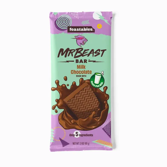 Наші шоколадні батончики Feastables MrBeast Milk Chocolate Bar - це ідеальне частування для любителів насиченого та кремового смаку. Складено всього з 5 інгредієнтів, що робить цей продукт ще привабливішим. Насолоджуйтеся ніжним шоколадом від MrBeast у кожному шматочку!