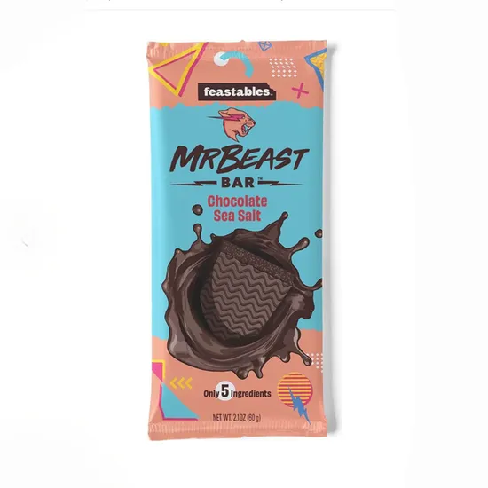 Насолоджуйтесь унікальним смаком шоколаду з морською сіллю від Feastables MrBeast! Зроблений з органічного какао, тростинного цукру та натуральної морської солі, цей шоколадний батончик містить лише 5 інгредієнтів. Пориньте в поєднання солодощі та ніжного присмаку морської солі – справжнє свято для вашого смакового рецептора!