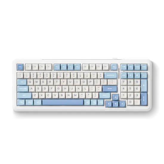MCHOSE K99 сочетает лучшее от мира кастомных клавиатур с удобством готового продукта. Конструкция Gasket Mount и шестислойная шумоизоляция делают процесс печати исключительно приятным и тихим, что идеально подходит для работы и ночного гейминга. Яркий дизайн «Sky Blue» выделяет ее из стандартных черных и белых моделей.