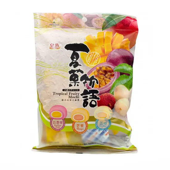 Пориньте у світ тропічних фруктів за допомогою моті від торгової марки Royal Family. У кожній упаковці ви знайдете три неповторних смаки: солодкий лічі, соковите манго та ароматну маракуйю. Насолоджуйтесь яскравими та соковитими фруктами цілий рік – чудовий вибір для здорового перекусу або десерту!