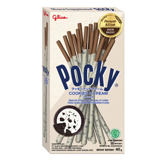 Pocky cookies and cream - хрусткі бісквітні палички зі смаком орео. Вони вкриті ніжним білим кремом та присипані печивом. Добре запаковані у фірмову картонну коробочку.