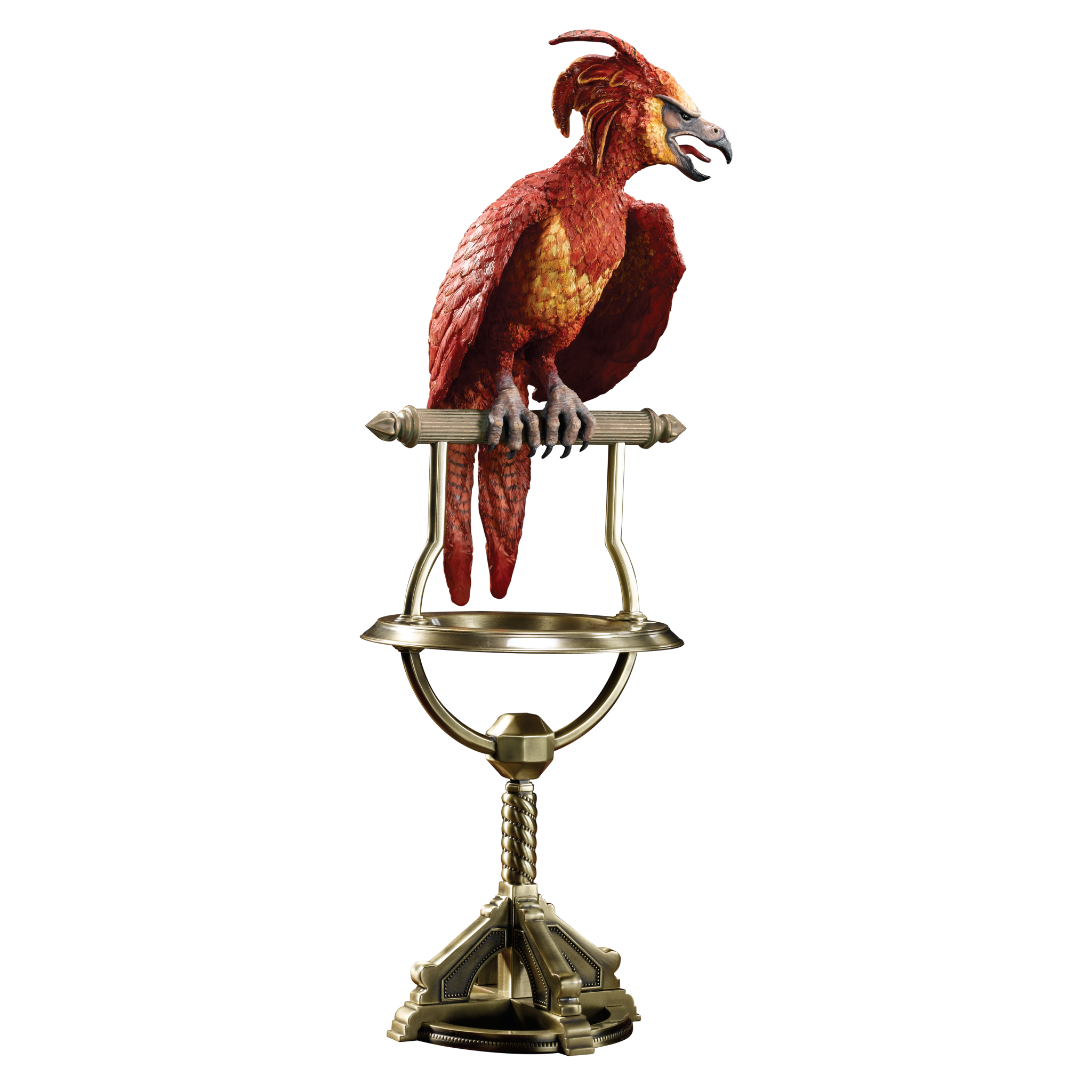 • Дизайн: Статуэтка запечатлела Фоукса в момент его величественного полета или приземления, демонстрируя богатые, многослойные детали оперения.