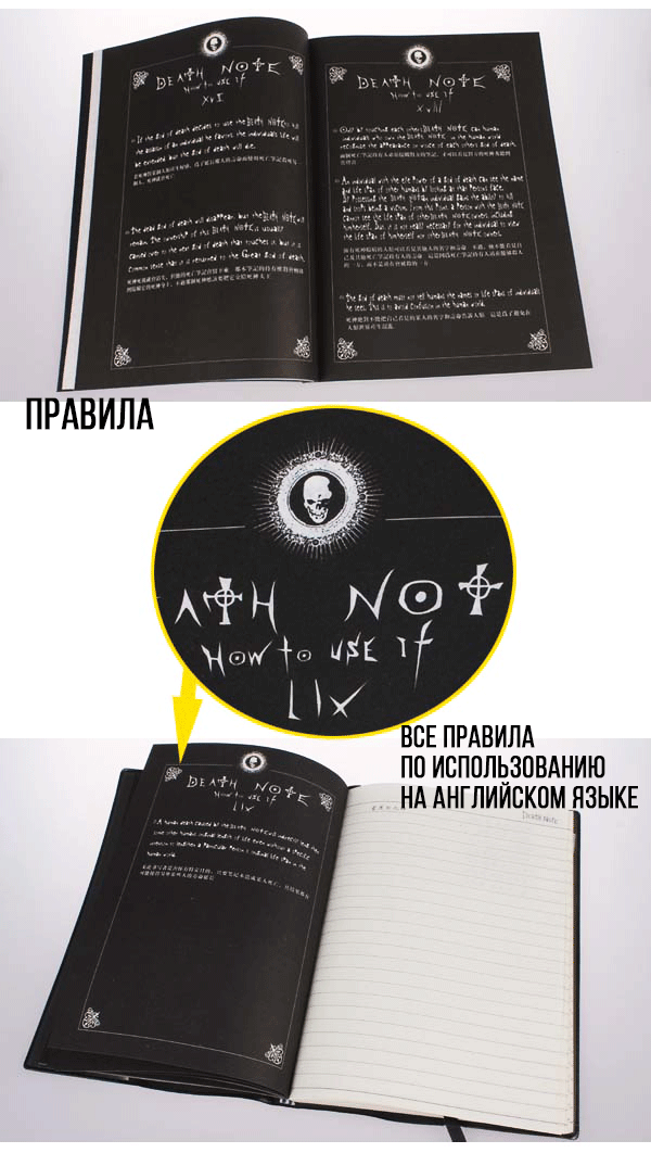 Тетрадь перед Вами - точная копия той самой Тетради Рюука. Хотя кто знает, возможно скучающий любитель яблок подсунул сюда и вполне рабочий экземплярчик.